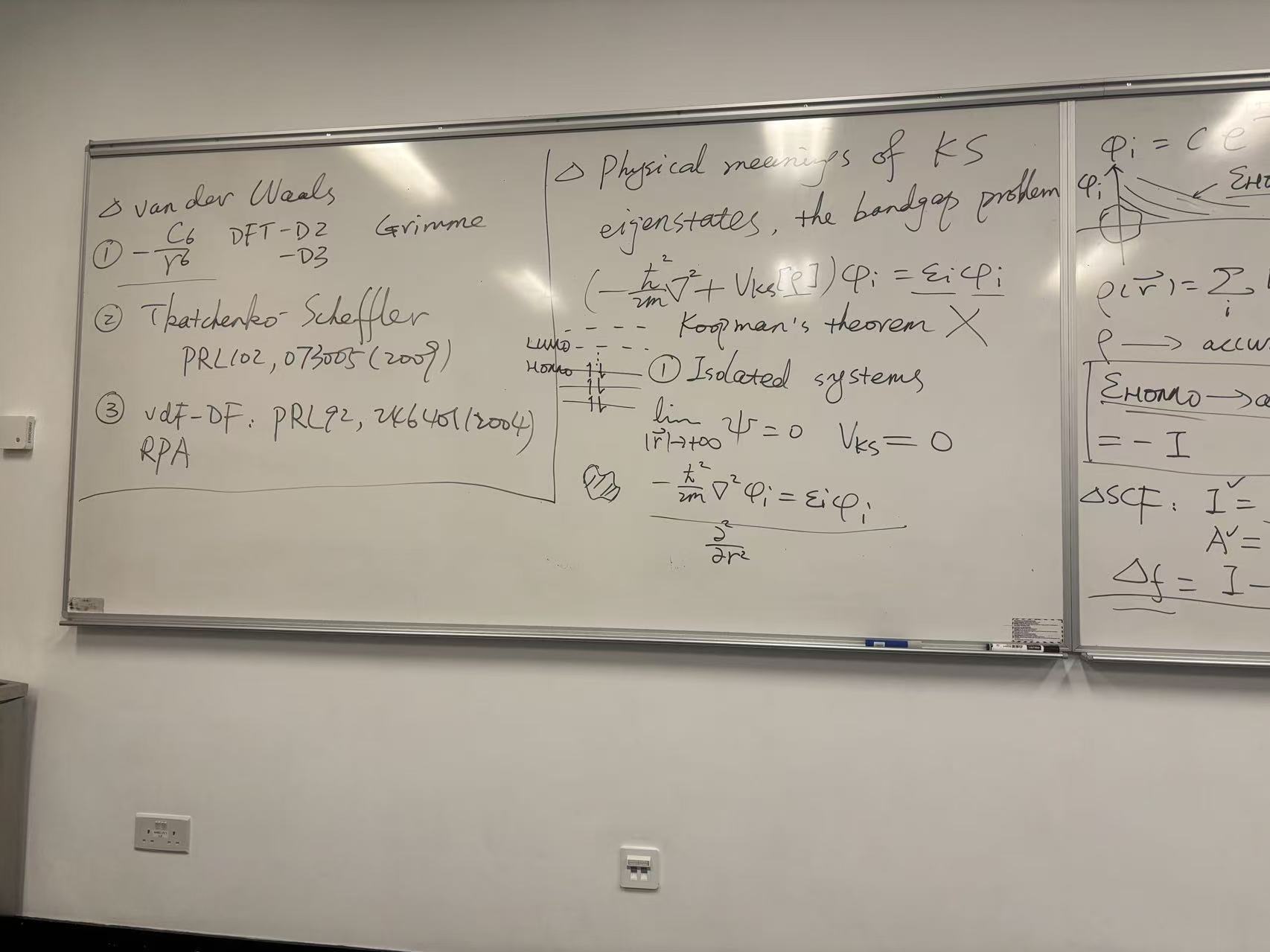 These four whiteboards tell a complete story of advanced DFT theory: