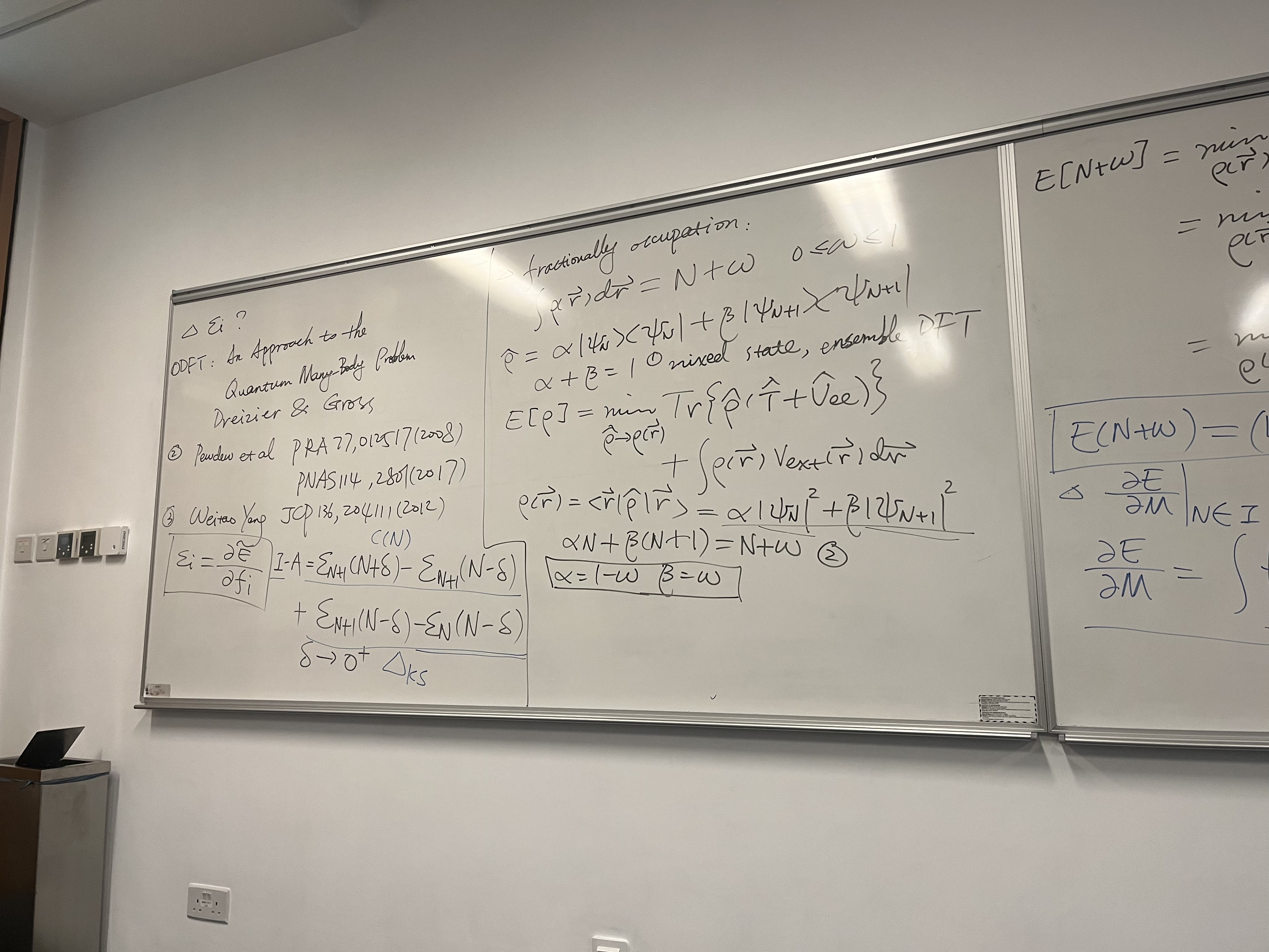 - Ensemble DFT: Standard DFT is for pure states. To describe fractional electrons, we use a statistical ensemble.